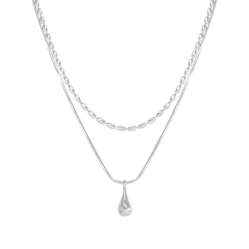 Elegant Double Layer Design – Waterdrop pendant for a chic, minimalist look.